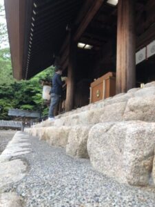 Praying in front of the money box in the shrine pavilion…This may sound like an ordinary thing to say, but the place in the shrine grounds where the deities are enshrined is called the “main hall” and the place in front of the main hall where visitors pay their respects is called the “hall of worship”, but some shrines have neither a main hall nor a hall of worship, and some shrines enshrine stones as their sacred objects. However, there is a money-offering box in front of it as a landmark.
